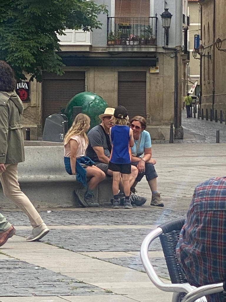 17 kilometer door de bergen zwoegt hij bleek achter ons aan en kan geen stap meer zetten als we de Auberge bereiken. De koorts is in alle hevigheid terug met daarbij een buikloop waar ik me snachts zorgen over maak. Hij ligt er goed af. Ik ben boos dat hij zo eigenwijs was maar daar hebben we niet zoveel aan en dus sleep ik met kopjes thee en bouillon en hou ik in de gaten of hij niet uitdroogt. De Auberge is verre van schoon, we moeten naar een andere kamer verkassen, er is geen winkel in dit dorp en de moed zakt me even in de schoenen. Hoe kom ik vandaag de dag met de kinderen weer door in dit gehucht? Het lukt in een barretje waar we het 'drollenspel' spelen. De pelgrims trekken aan ons voorbij terwijl ik drie plastic drollen op mijn hoofd heb. De volgende dag is Maarten in staat om met de bus weer naar het volgende dorpje te rijden en pakken de kinderen en ik de rugzak weer op. Ik heb een Auberge geboekt met slaapzaal voor vier dus vanavond slapen we zonder snurkende mensen om ons heen in het plaatsje Los Arcos. De volgende ochtend is dat van die snurkende mensen gelukt. Maar ik ben blij als ik dit Pelgrims bordeel uit loop. Gelukkig houdt Maatje zijn humor ook als hij ziek is, dit woord klopt zo! Plastic matrassen, papieren hoes lakens, het ruikt naar desinfectie middel en ik heb een koude pisstraal als douche. Waarom doen we dit ook alweer? Waarom sleep ik elke dag 13 kilo mee en maken we geen gebruik van bagagevervoer? Omdat ik voel dat ik leef, omdat we veerkrachtiger worden, omdat ik blijf genieten van de velden vol klaprozen en omdat er steeds kleine wondertjes gebeuren. We, als het even pittig en eentonig wordt, ineens de twee leuke oma's Ineke en Helène tegen komen waarmee we met nieuwe energie het laatste stuk van de etappe wandelen. Die een arm om Joes heen slaan en Annabloem haar voetjes masseren. Of, nog zo'n wondertje, dat Joes graag met een chocolade broodje wil ontbijten maar de winkels nog dicht zijn en dat er dan een busje stopt wat de bakker blijkt te zijn die hem spontaan een chocolade broodje geeft... Het zijn de kleine dingen en is dat niet waar het om gaat? In het hele leven? En fit zijn, natuurlijk. Gelukkig knapt Maarten weer op en vandaag loopt hij weer mee. We maken er een korte etappe van en komen rond het middaguur in je stadje Logrono aan. Kennelijk hebben de kindjes even opa's en oma's nodig (en ik misschien ook wel) nu Maarten wat minder krachtig is en dus komen we de lieve Vlamingse Johan (die een kopie is van opa Wim) en Ingrid tegen die met de kinderen levensgroot ganzenbord doen op een plein in de stad. Wat fijn de afgelopen dagen extra opa's en oma's om ons heen. We komen er langzaam weer in, slapen vannacht in een heerlijk bed met echte lakens en een warme douche, al zijn het natuurlijk de pelgrim bordeels die voor de herinneringen zorgen..